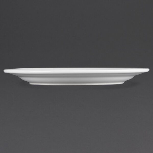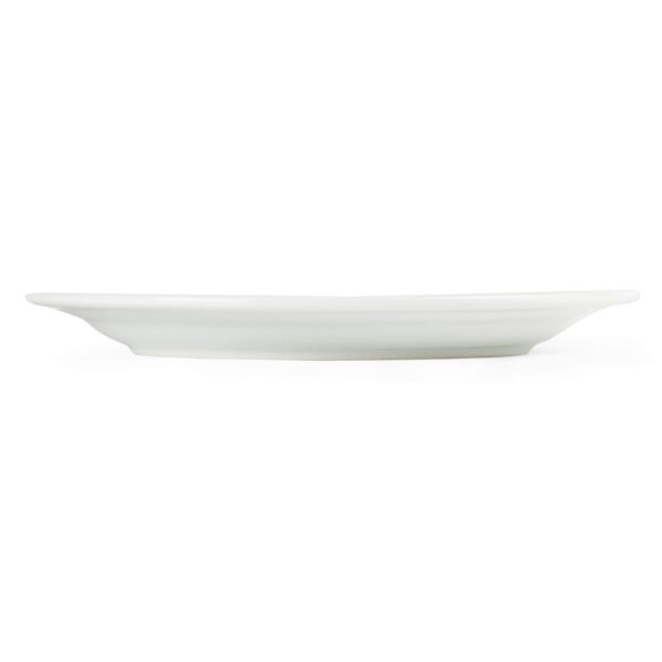Our great value pure white porcelain wide rimmed plates by Olympia are fully vitrified for heat and shock resistance, the ideal crockery for hotels which want simplicity.