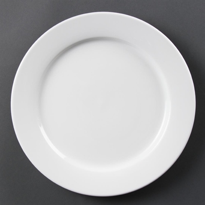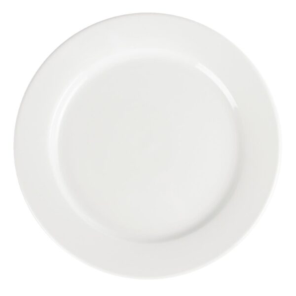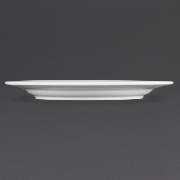 Our great value pure white porcelain wide rimmed plates by Olympia are fully vitrified for heat and shock resistance, the ideal crockery for hotels which want simplicity.