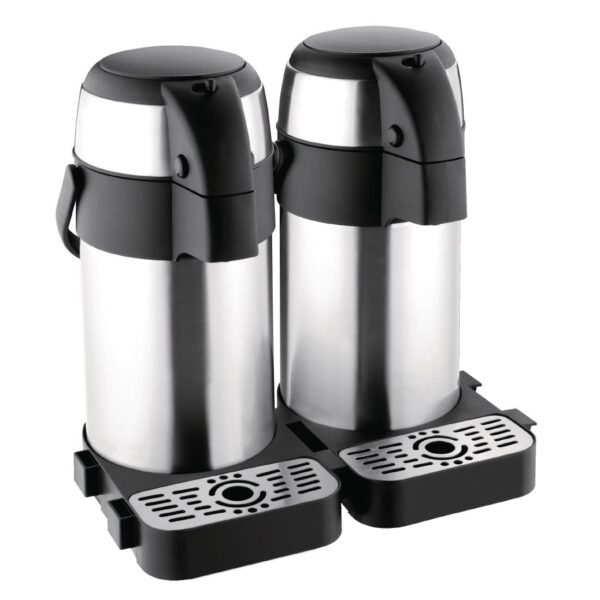 The tray has a recess that holds the Olympia 5Ltr Pump Action Airpot (DL164) and you can connect as many as you like.