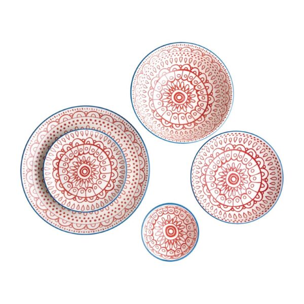 Boasting two contrasting red patterns and a bright blue rim, each bowl exudes energy and vibrancy, breathing life into your dining environments to excite and amaze your customers.