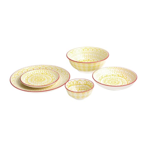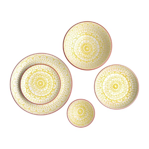 Produced with an intricate, internal yellow design and a contrasting red rim, these large bowls radiate vibrancy and style, perfectly complementing your exotic dishes and rejuvenating your décor to give your customers a memorable dining experience.