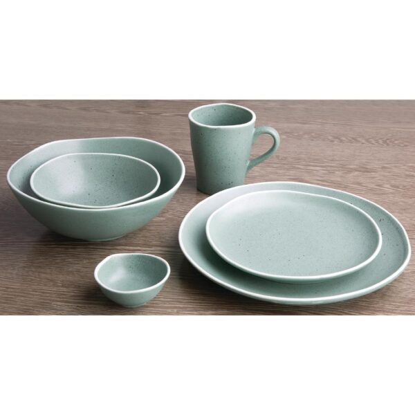 Boasting a rustic green colourway and featuring a reactive glaze that produces a unique, speckled finish on each plate, this crockery is remarkably attractive and oozes charm, breathing character and life into your dining environments.