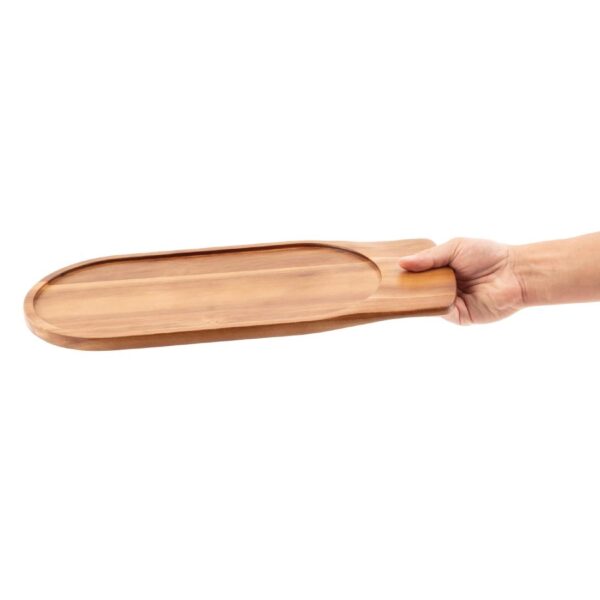 Bring the beauty of nature to your food presentation with the 180(W) x 415(D)mm Olympia acacia wood dish board.
