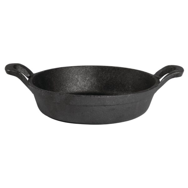 - The Olympia round cast iron eared dish is a durable dish, perfectly designed for oven-to-table service.