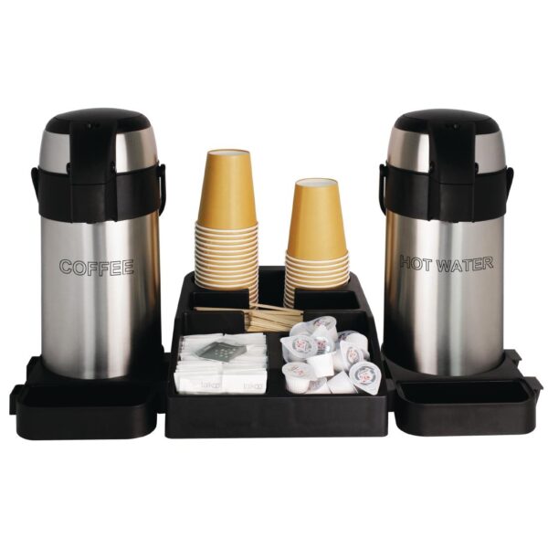 Ideal for using at buffets, functions or corporate events, the airpot station has plenty of room for everything youll require when serving hot drinks.