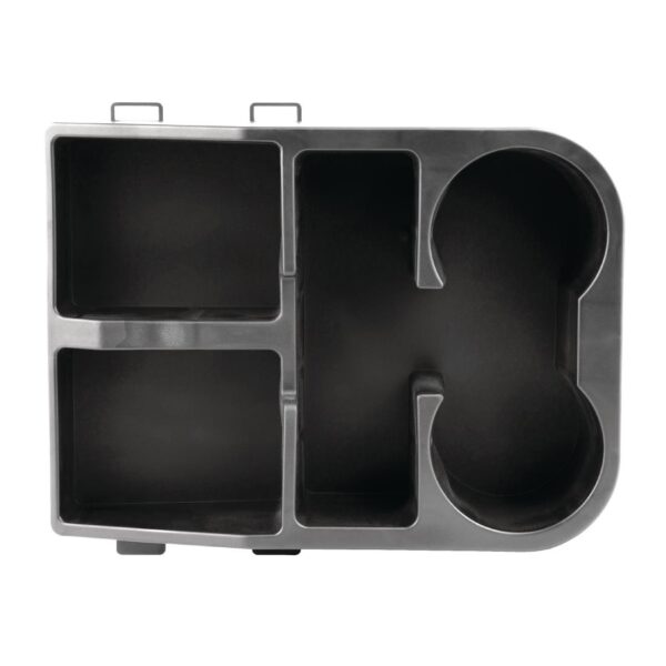 With space for disposable cups, wooden stirrers, sugar sachets and disposable milk pots, keeping condiments tidy is simple.