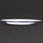 Create a charming table setting with this collection of blue and white enamel tableware.