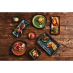 The dark and attractive rim of this Olympia Nomi platter tapers inwards to a flecked finish against the richly coloured central well.