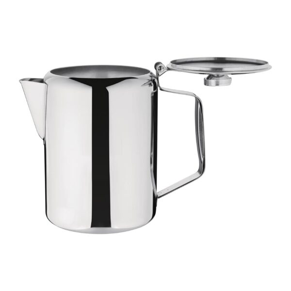 Perfect for visitor attraction tearooms or busy cafes, this 570ml stainless steel teapot features a hinged lid for easy filling, emptying and cleaning.
