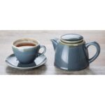 The teapot helps to create a welcoming atmosphere thanks to its soothing Ocean colour and reactive glaze.