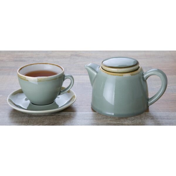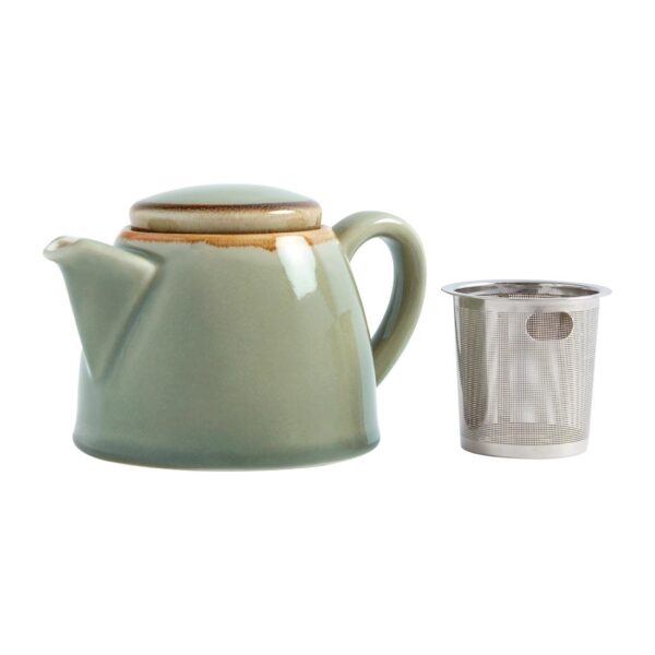 The soothing Moss colour combined with the reactive glaze creates a teapot that is soothing to look at and complements the rustic, hand thrown appearance of this artisan teapot.