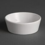 This traditional, 2 3/4 oven to table ramekin from Olympia is designed to provide a great value and hardwearing porcelain crockery solution for busy hotels, canteens, casual dining restaurants and cafés.