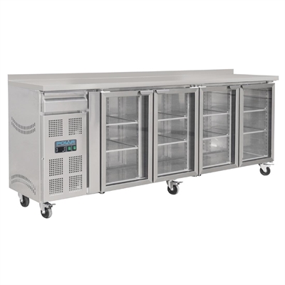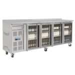 From the premium Polar U-Series range, this four-door stainless steel counter display fridge with 50mm splashback and cutlery drawer is ideal for the busiest bars and pubs.