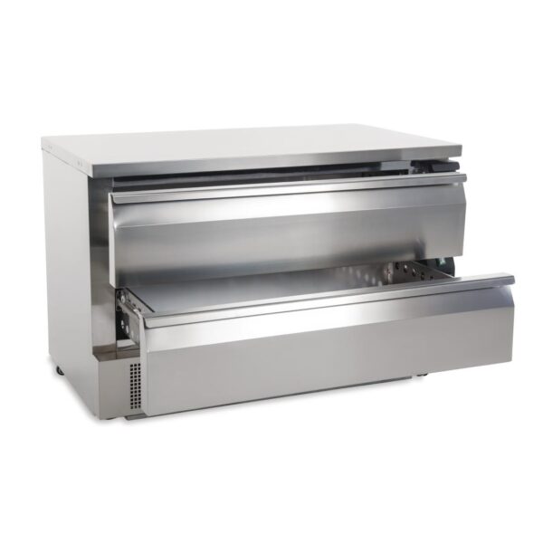 Its single drawer is large enough to fit up to three full size 1/1 gastronorm pans.