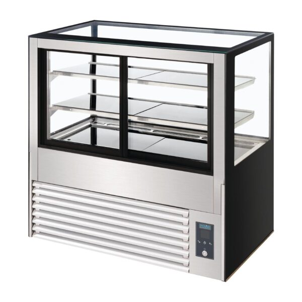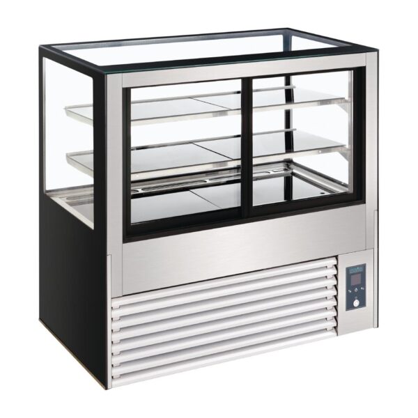 Two sturdy adjustable shelves ensure tall cakes or bottles can be positioned attractively in the display fridge, while the simple rear-mounted digital control panel makes temperature regulation effortless.