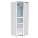 This tall fridge features lockable self-closing doors for security, along with user-friendly controls and a digital display to monitor or adjust temperatures easily.