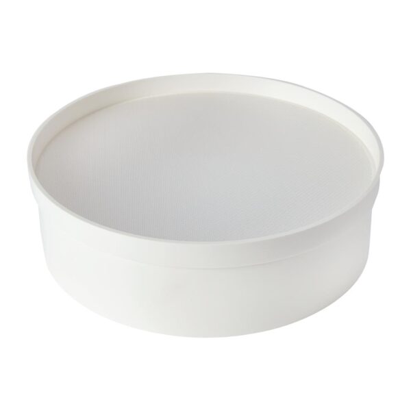 - The sieve is made from a strong and durable polypropylene that makes it easy to clean and ideal for use in busy commercial kitchens and bakeries.