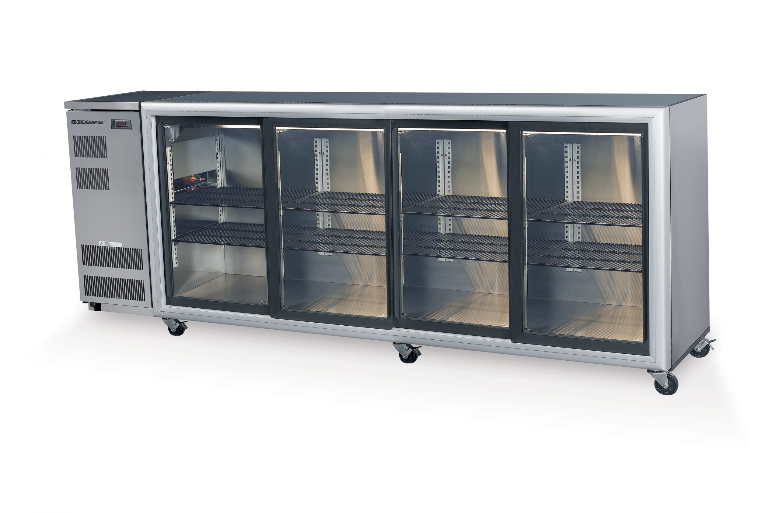 A top quality back bar chiller, the Skope BB380X double door is the ideal solution for the stylish merchandising of bottled drinks.