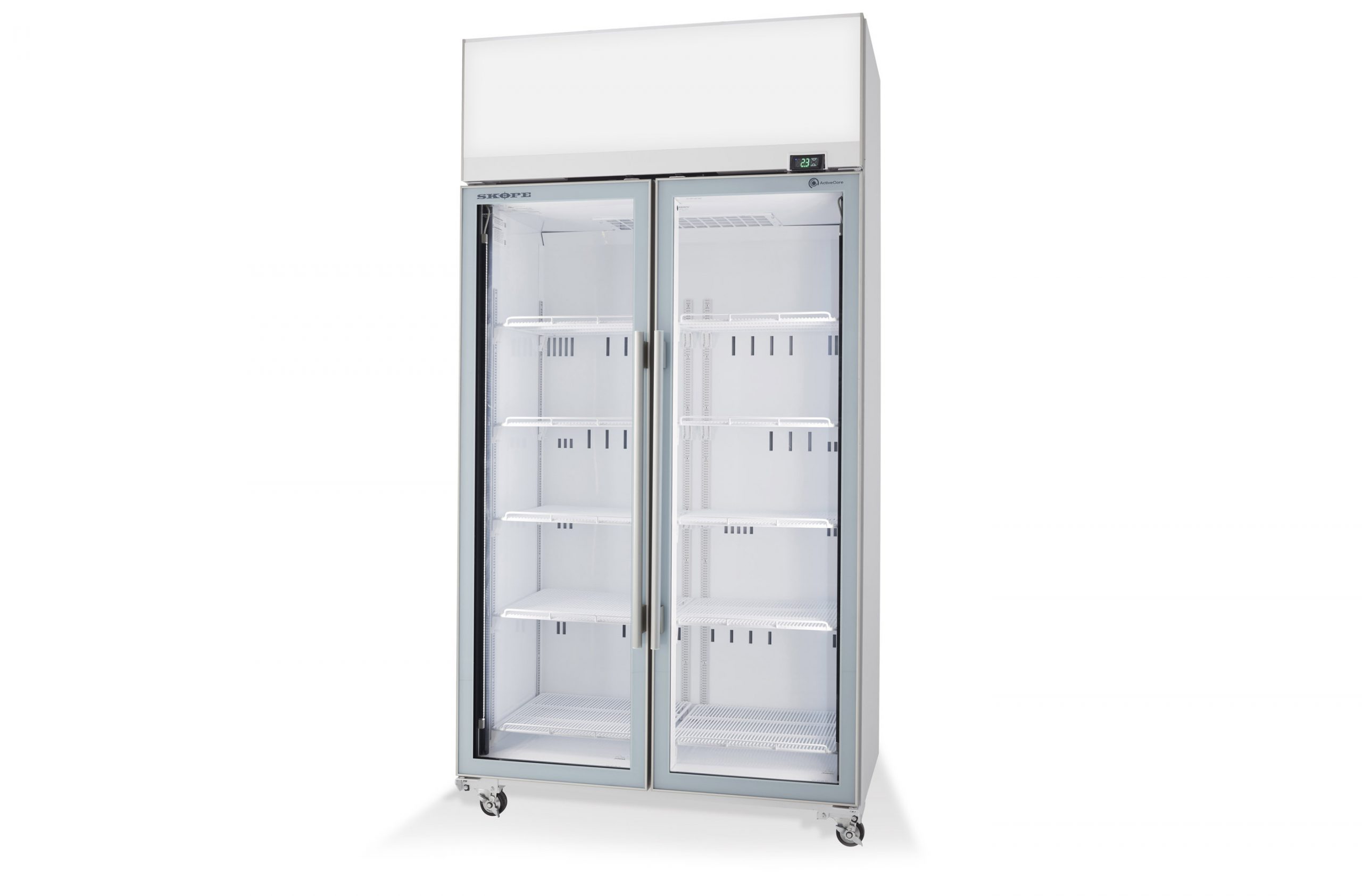 Skope TME1000N-AC 2 Glass Door Display or Storage Fridge, Lit Sign
