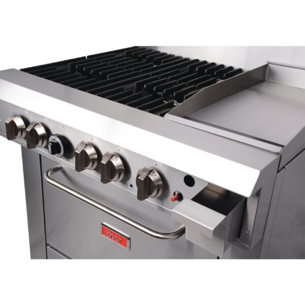 With four open burners and a 305mm griddle plate, this allows you to shallow fry large quantities of food whilst simultaneously cooking in the oven and on the open burners.