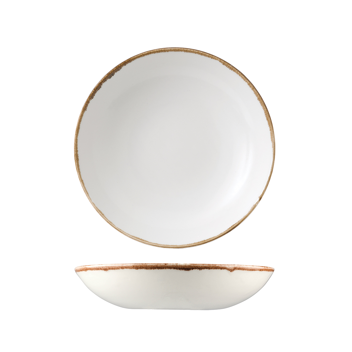 With the distinctive hand finished brown edge on a plain white base, Harvest Natural can be mixed and matched with Harvest colours or plain white tableware for an individual look.