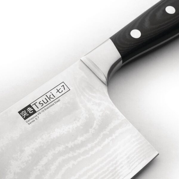 This classic cleaver by Tsuki features a Japanese VG-10 stainless steel core hardened up to 60° Rockwell rating, providing a great cutting performance for longer.