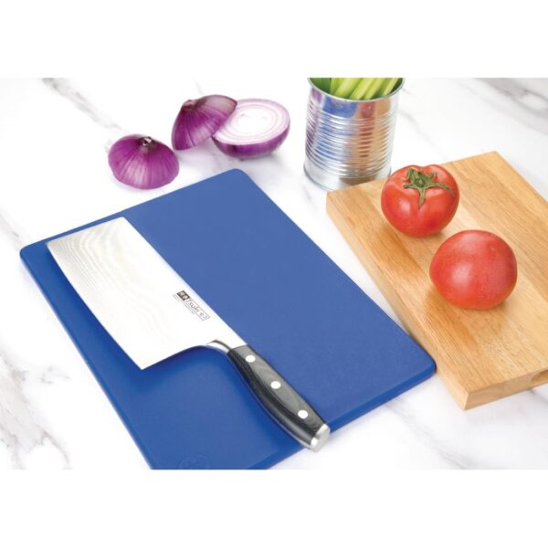 The wide blade carries chopped food from the cutting board to your pan and the inner layer is coated by two layers of Damascus steel, protecting it against corrosion.