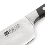 This classic vegetable chopper from Tsuki features a Japanese VG-10 stainless steel core hardened up to 60° Rockwell rating, providing great cutting performance for longer.