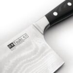 The knife is expertly crafted using a Japanese VG-10 stainless steel core hardened to 60° Rockwell rating, making it extremely durable.