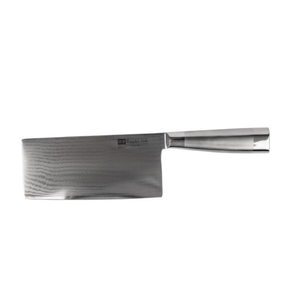 With an attractive polished stainless steel handle, this Japanese style cleaver is visually striking as well as sharp.