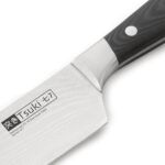 This classic Santoku knife features a Japanese VG-10 stainless steel core hardened up to 60° Rockwell rating, providing great cutting performance for longer.