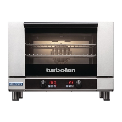 The E27M2 Turbofan is a compact and powerful 2 tray full size manual electric convection oven which delivers incredible results without the need for hardwiring.