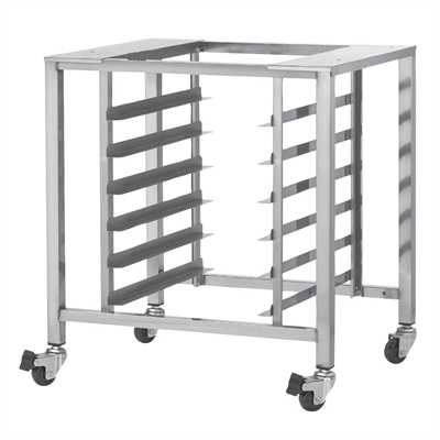 Not only that, the stand also includes six tray positions, allowing up to six full size sheet pans or twelve half size pans, saving valuable kitchen space.