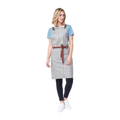 Made from a unique blend of linen and viscose, it is softer than a 100% linen apron and features adjustable metal clasps at the neck to comfortably fit any body size.