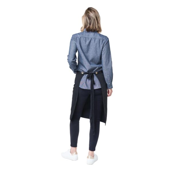 A large patch pocket with detailed stitching on the front makes it the perfect artisan apron to complement any hospitality uniform.