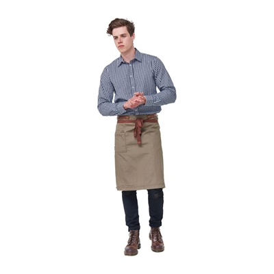 A black PU leather studded strap around the waist gives this apron a more modern and fresh look that will complement any professional hospitality uniform, particularly for wine room, cocktail or bar staff.