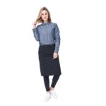 Subtle design details and a pale blue colour give this apron a light and professional look to complement any hospitality uniform.