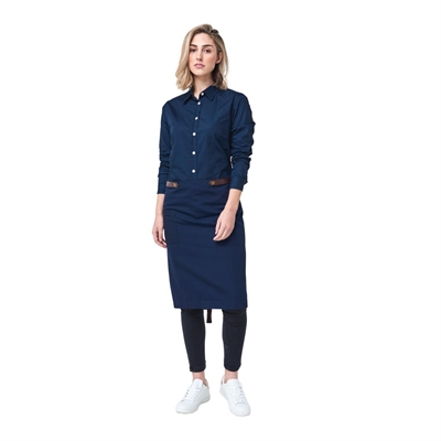 Designed to hold its smart navy colour for longer, this popular hospitality bib apron is highly resistant to creases – less time on the ironing board, more time on the job.