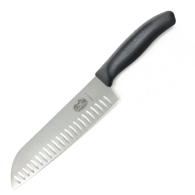 - This Victorinox Santoku knife has a high quality razor sharp stainless steel scalloped blade with a unique anti-slip nylon Fibrox handle.