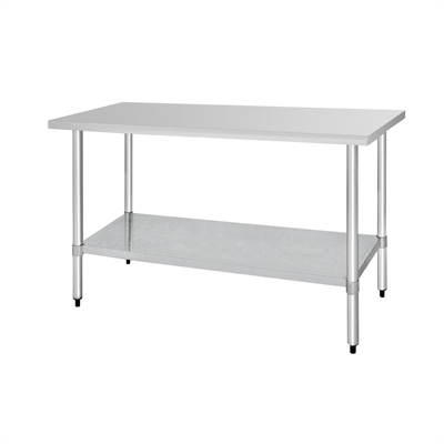 This professional and hygienic kitchen prep table is designed for use in commercial kitchens, featuring a strong and durable 304 stainless steel worktop.
