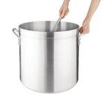 Pairing premium quality material with a generous 47.2 Litre capacity, this aluminium stock pot from Vogue is ideal for preparing large quantities of stock, soup or chilli.