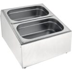 This rack fits two 1/3 GN pans or four 1/6 pans depending on your desired configuration.
