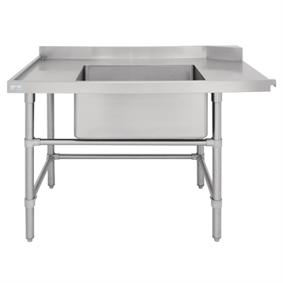 Due to the size this inlet table and double sink is suitable for large kitchens.