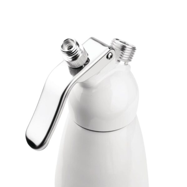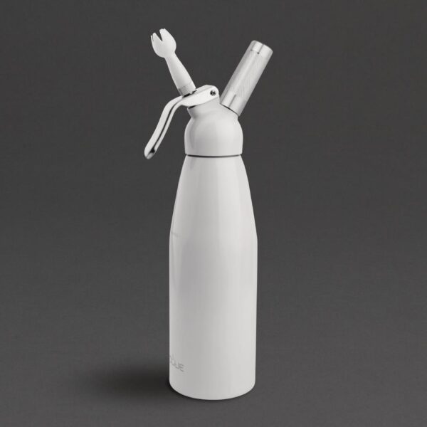 Add large quantities of whipped cream to your desserts and drinks with ease, thanks to this high quality Vogue one litre whipped cream dispenser.