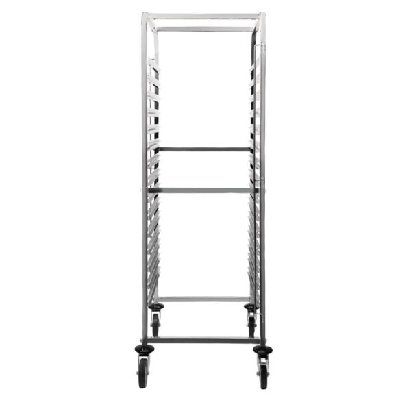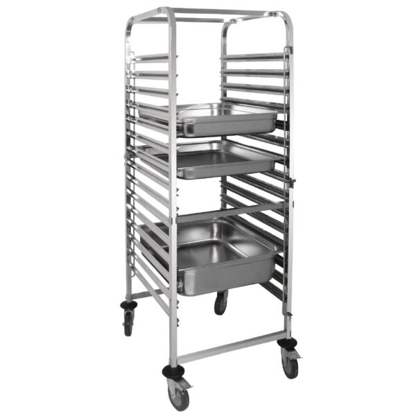 The trolley has 20 shelves, all sized to hold 1/1 sized gastronorm pans, making it an essential for restaurant kitchens.