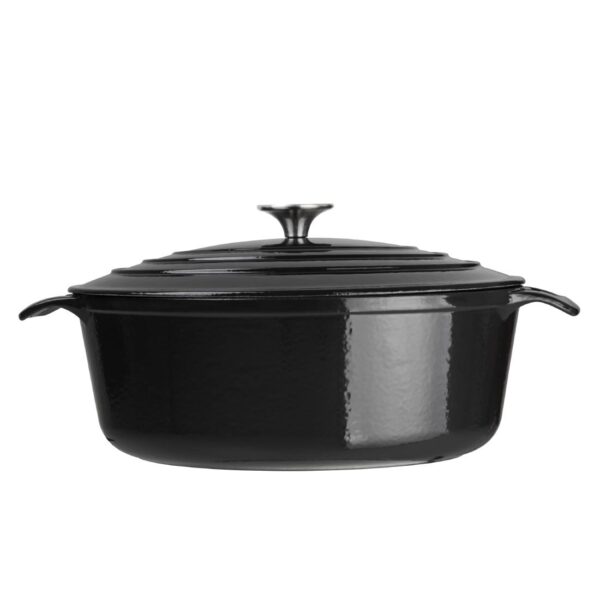 This traditional black oval casserole dish is well suited to use in any kitchen, from the family kitchen to bustling restaurants.