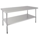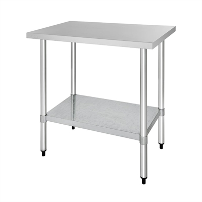 Create practical and reliable kitchen prep table runs with this 1800mm wide table from Vogue, featuring a 304 stainless steel table top for enhanced strength and durability.
