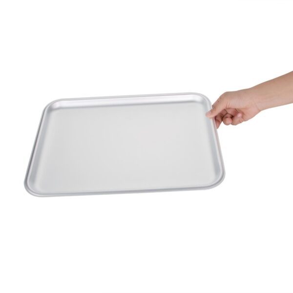 - Regardless of your surroundings, be it a commercial bakery or home kitchen, this aluminium baking tray from Vogue is ideal for regular baking.