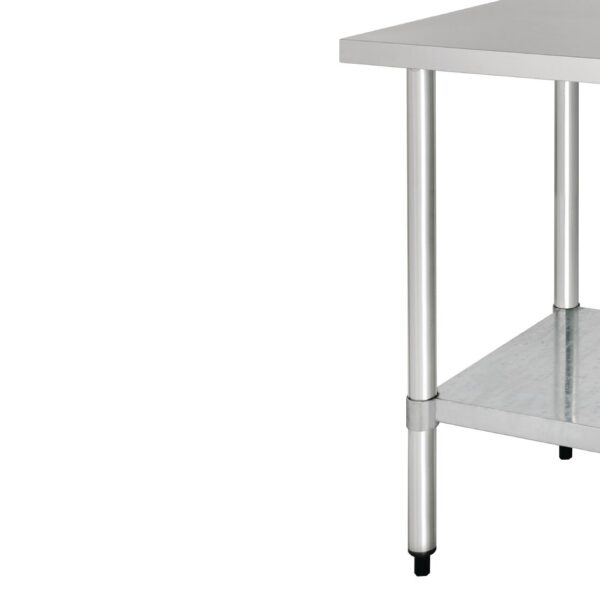 Designed to stand up to the pressures of any commercial kitchen, this 2400mm wide Vogue premium stainless steel prep table is an essential for any fast-paced professional catering environment.