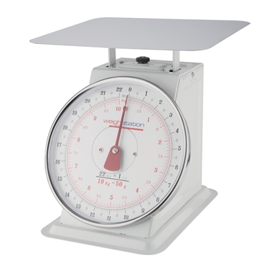 - The large flat platform on this Weighstation kitchen scale will take heavy food deliveries or large slices of meat with ease.